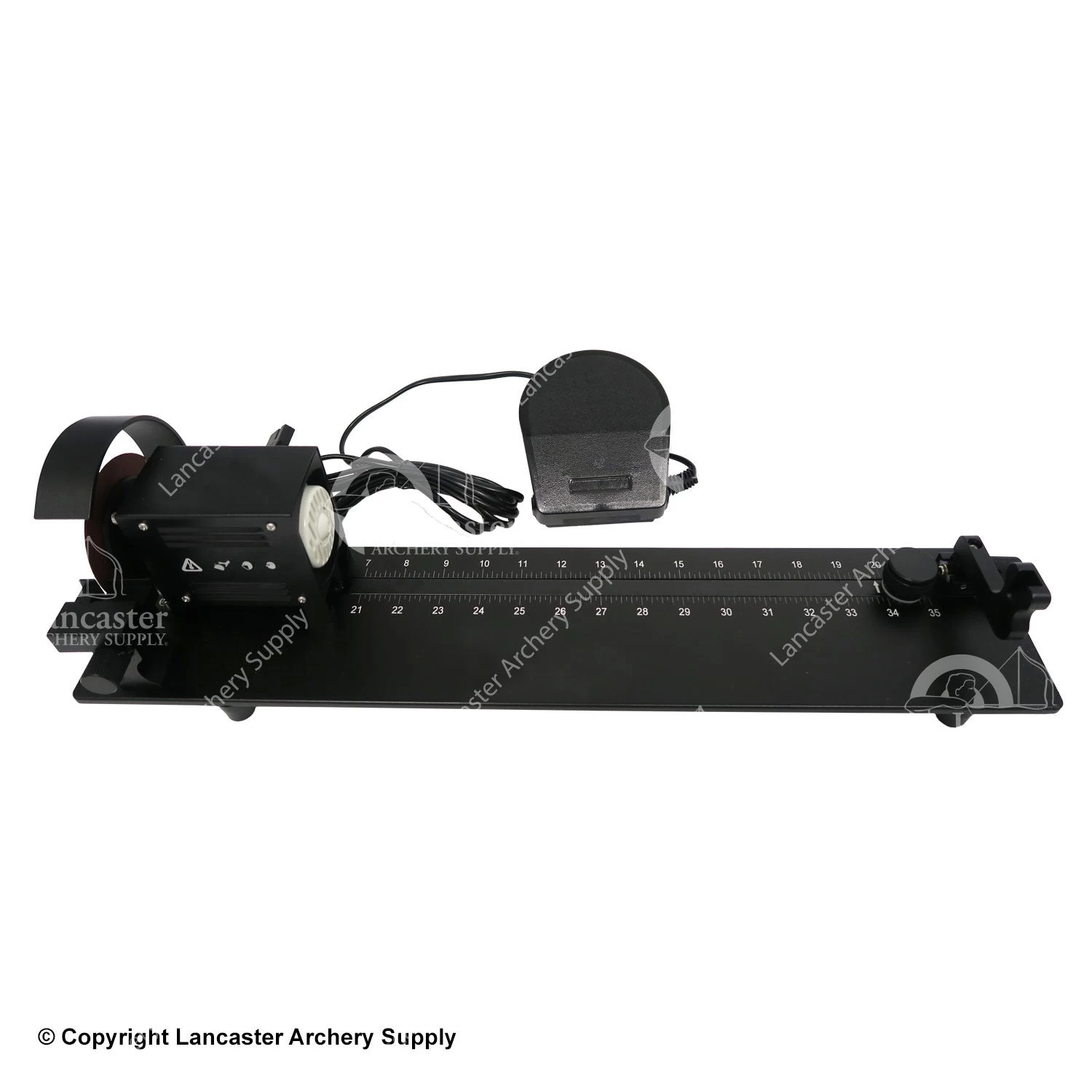 The Pro Arrow Saw by X-Spot is a must-have for any Pro Shop or serious home arrow building station. The micro-adjustable blade spins at 6000 RPM for precision cuts from 7” to 36”. The saw runs off 110 (standard wall plug) power and is operated by a convenient footswitch.